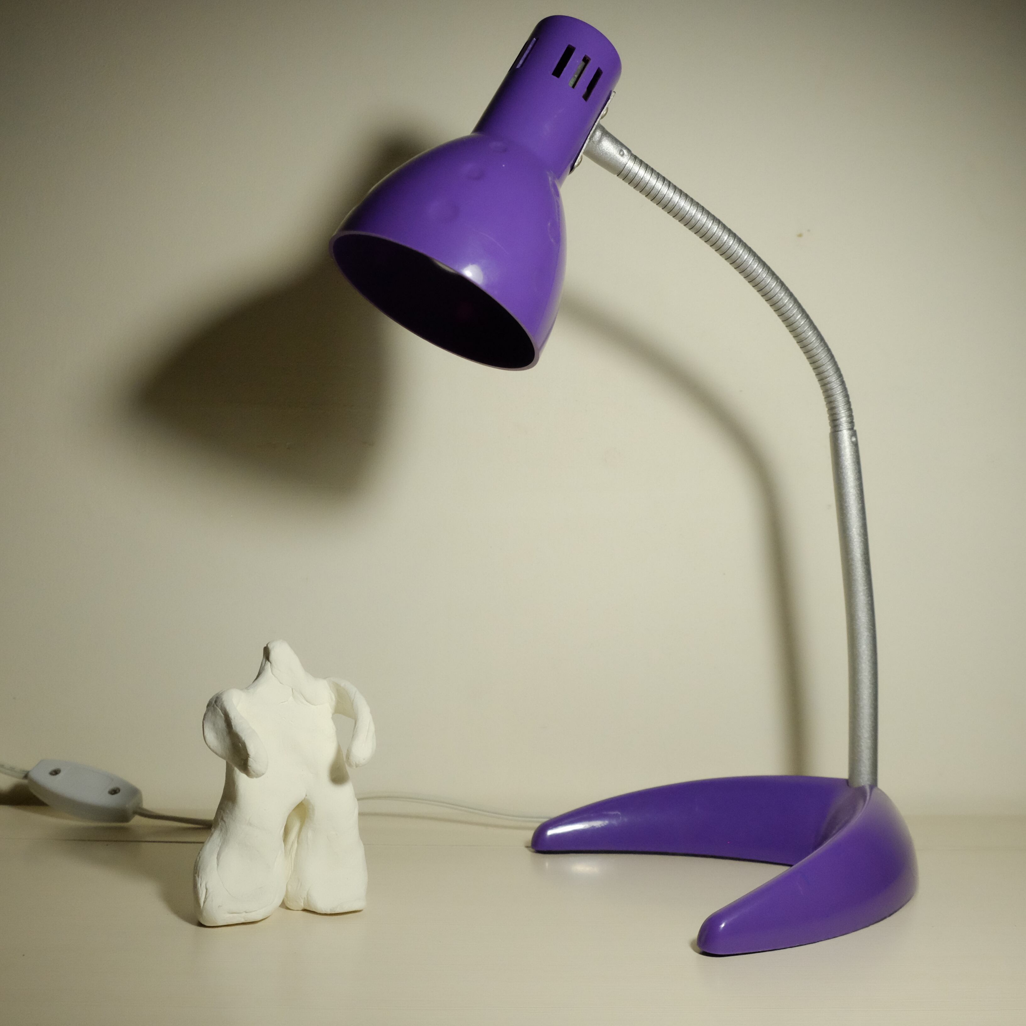 POPなパープルにシルバーの部品たちが映えるスタンドライト。