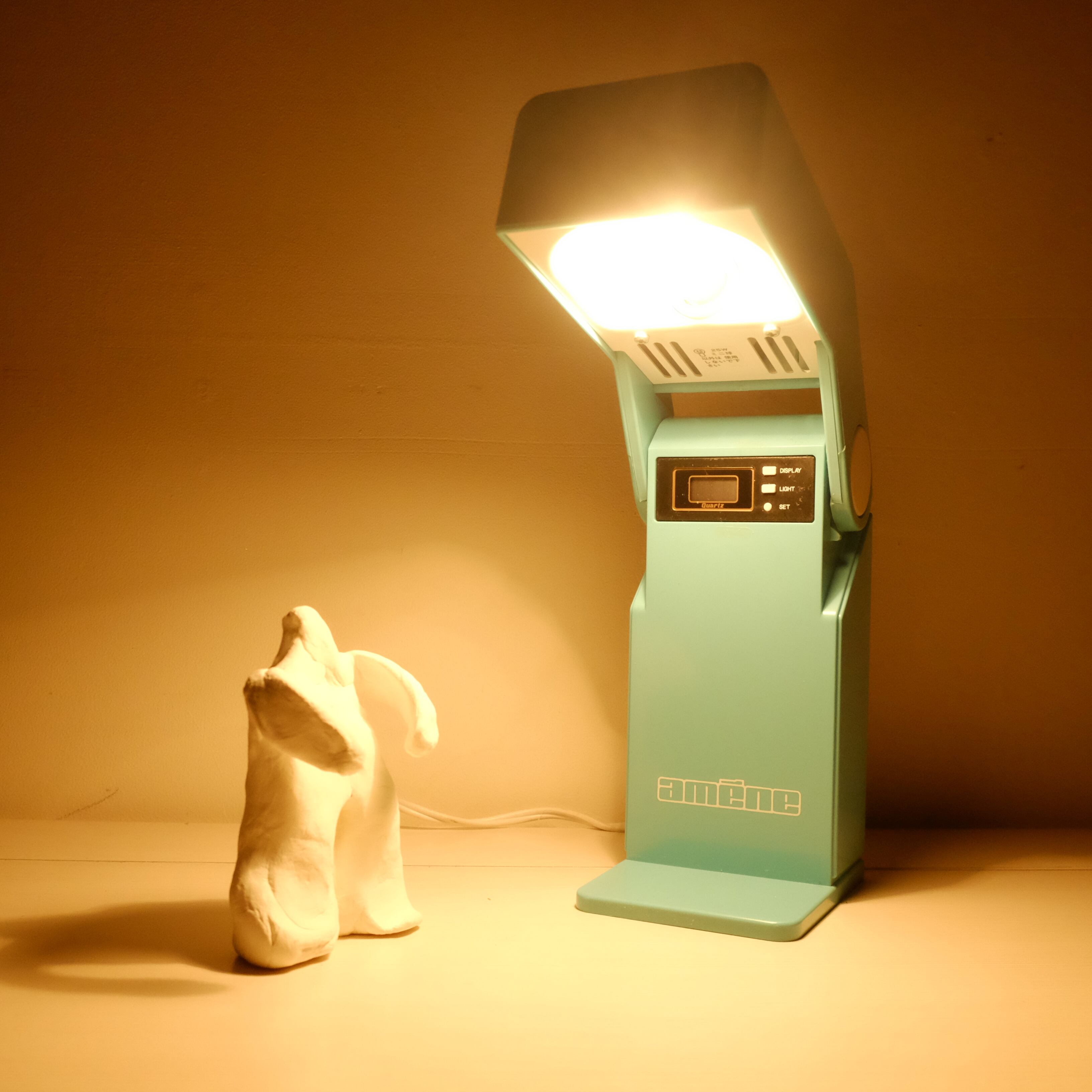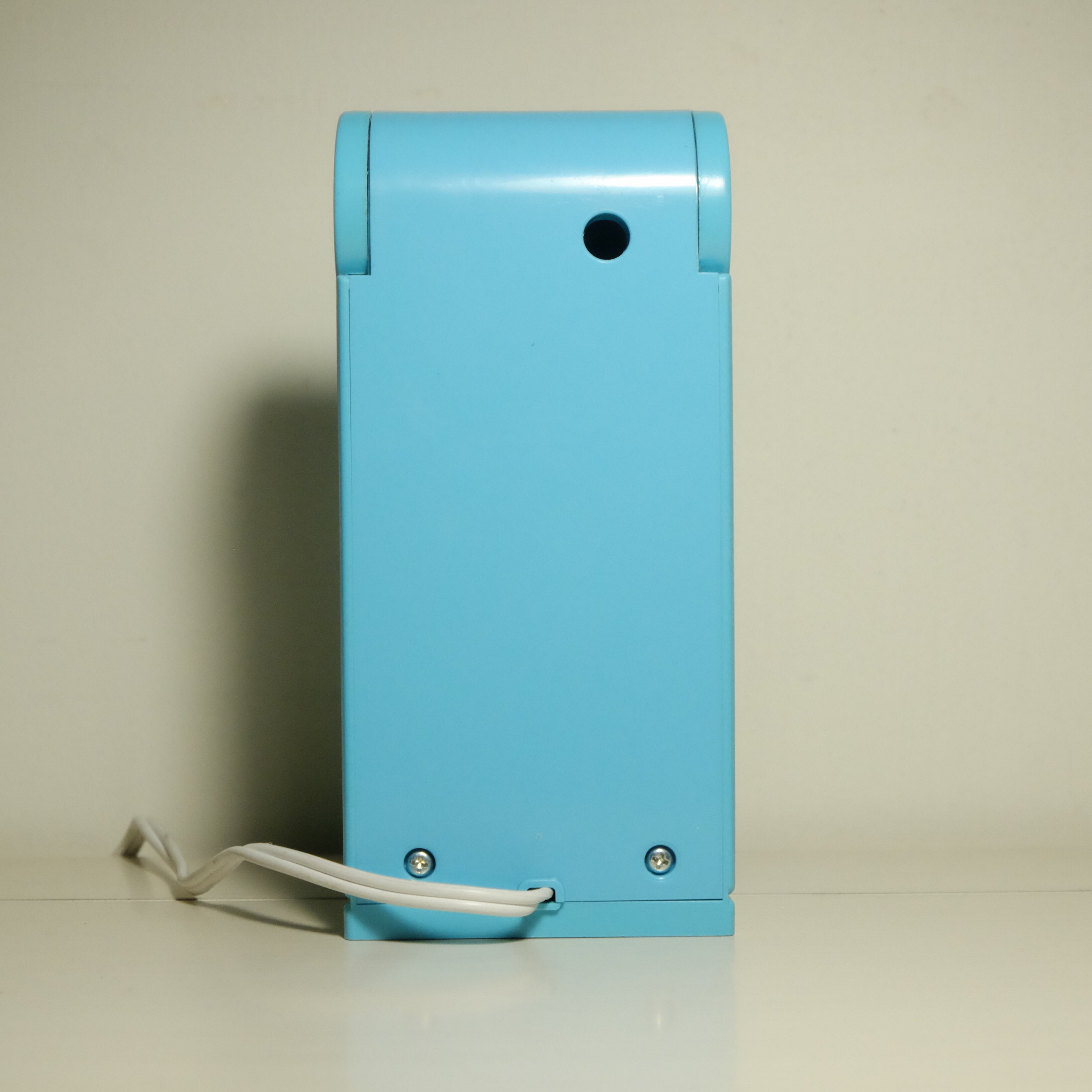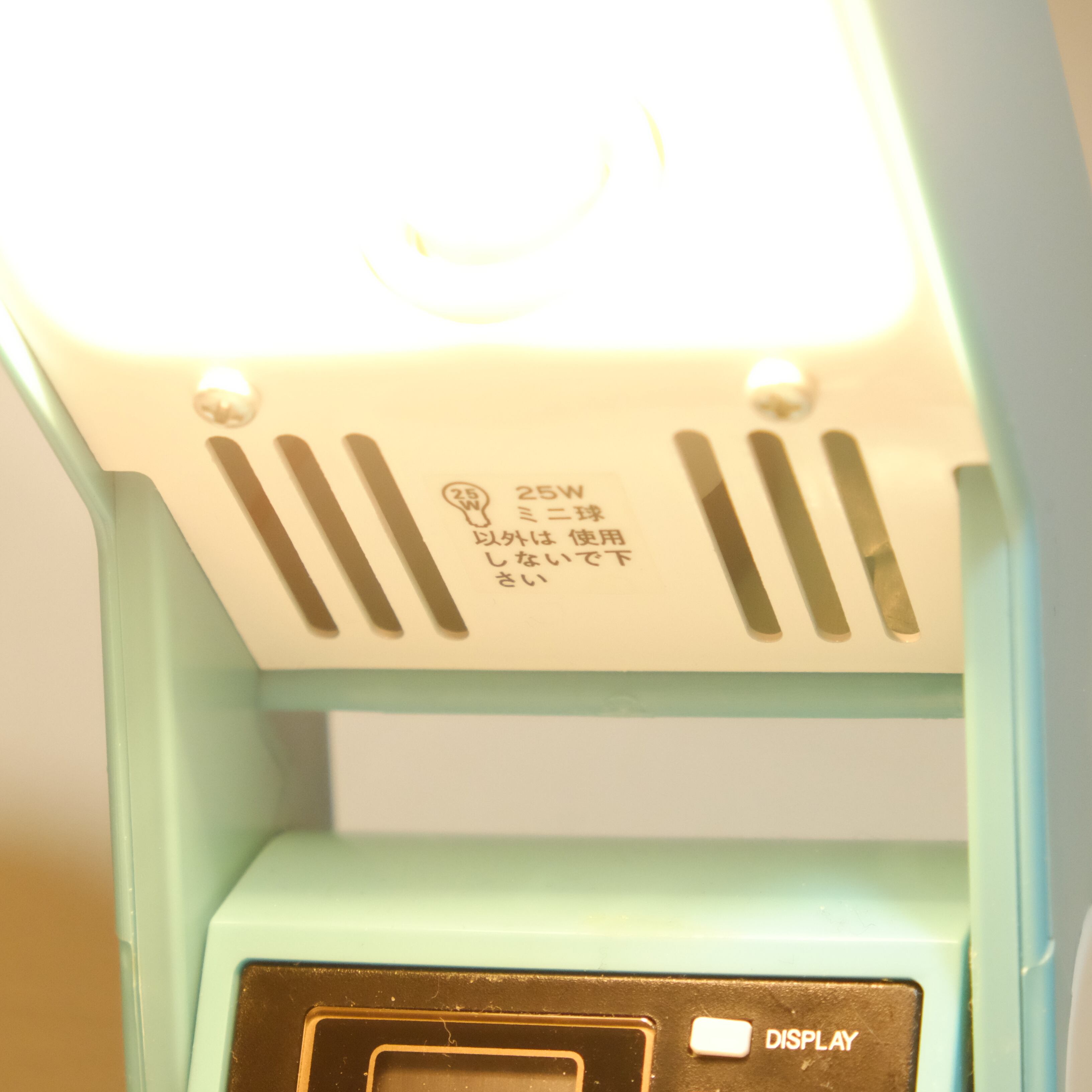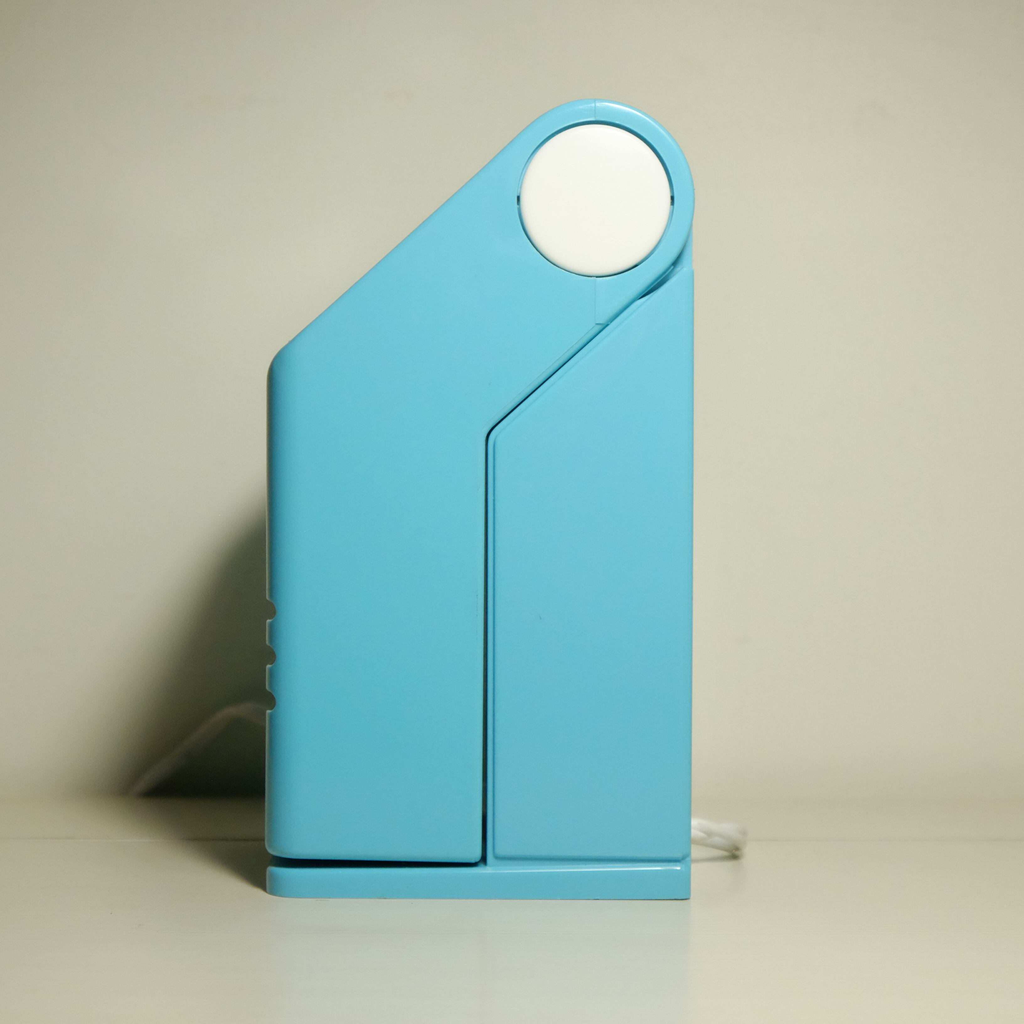 レトロな水色と折りたたまれた形がキュートなデスクランプ。