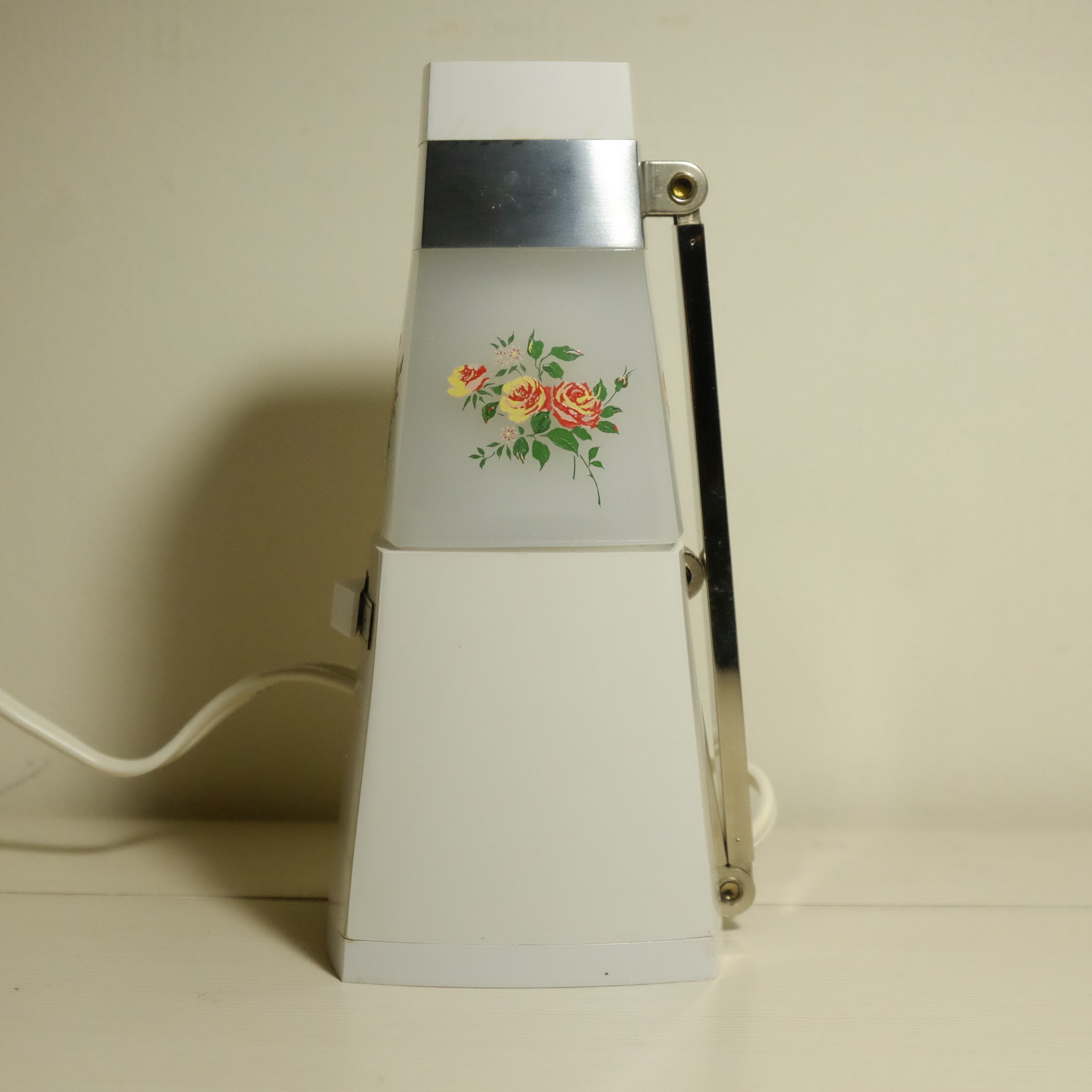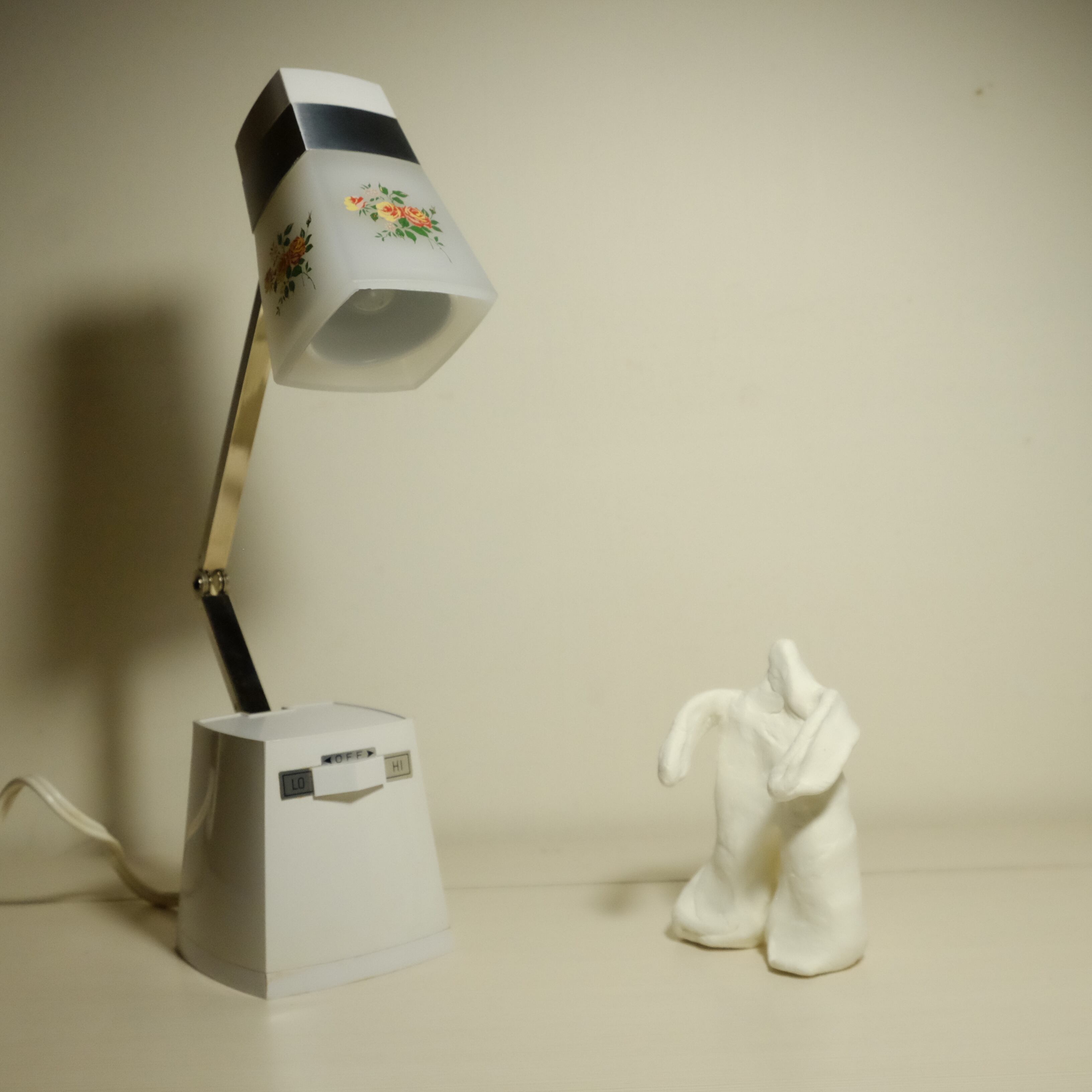 白いボディに花柄が映えるスタンドライト。