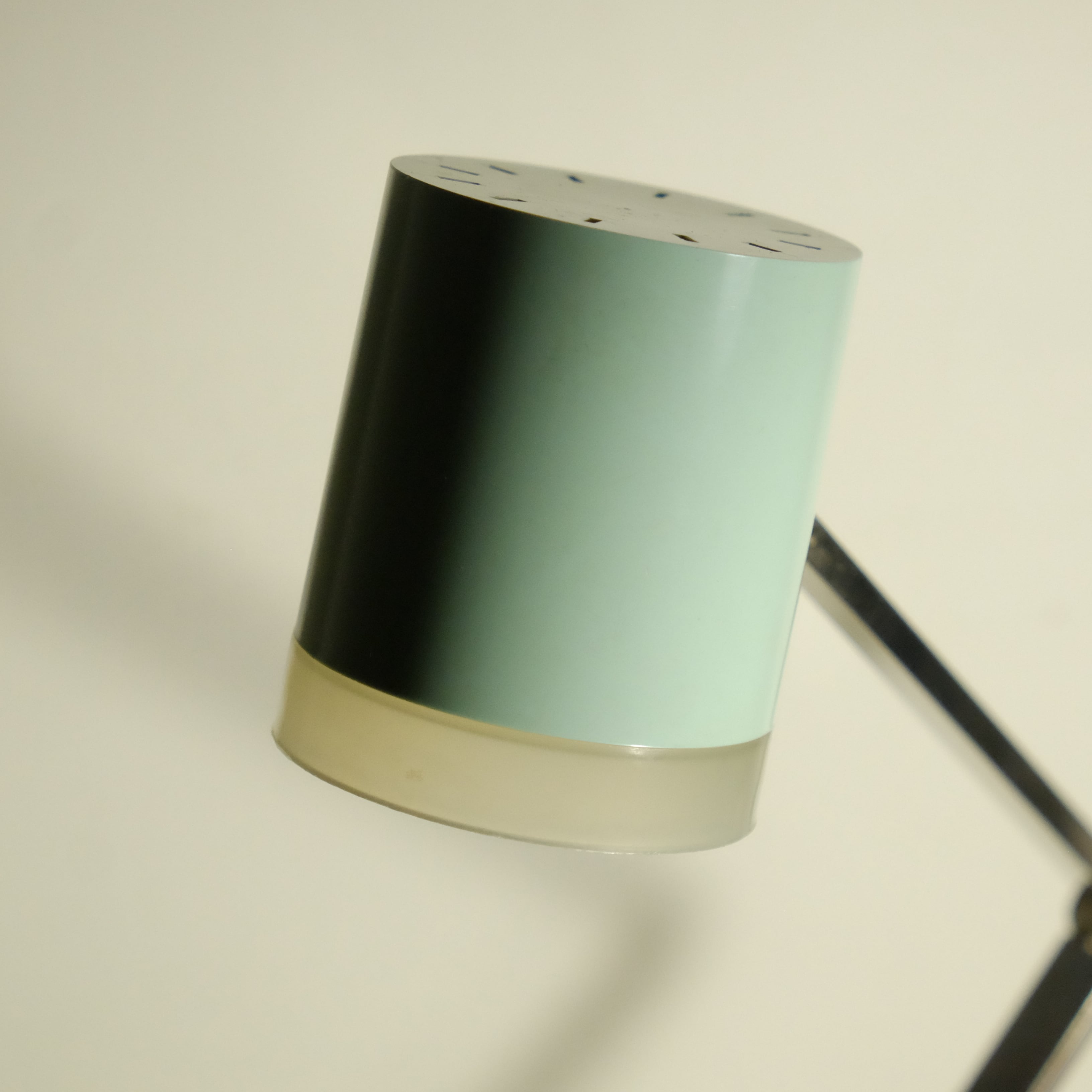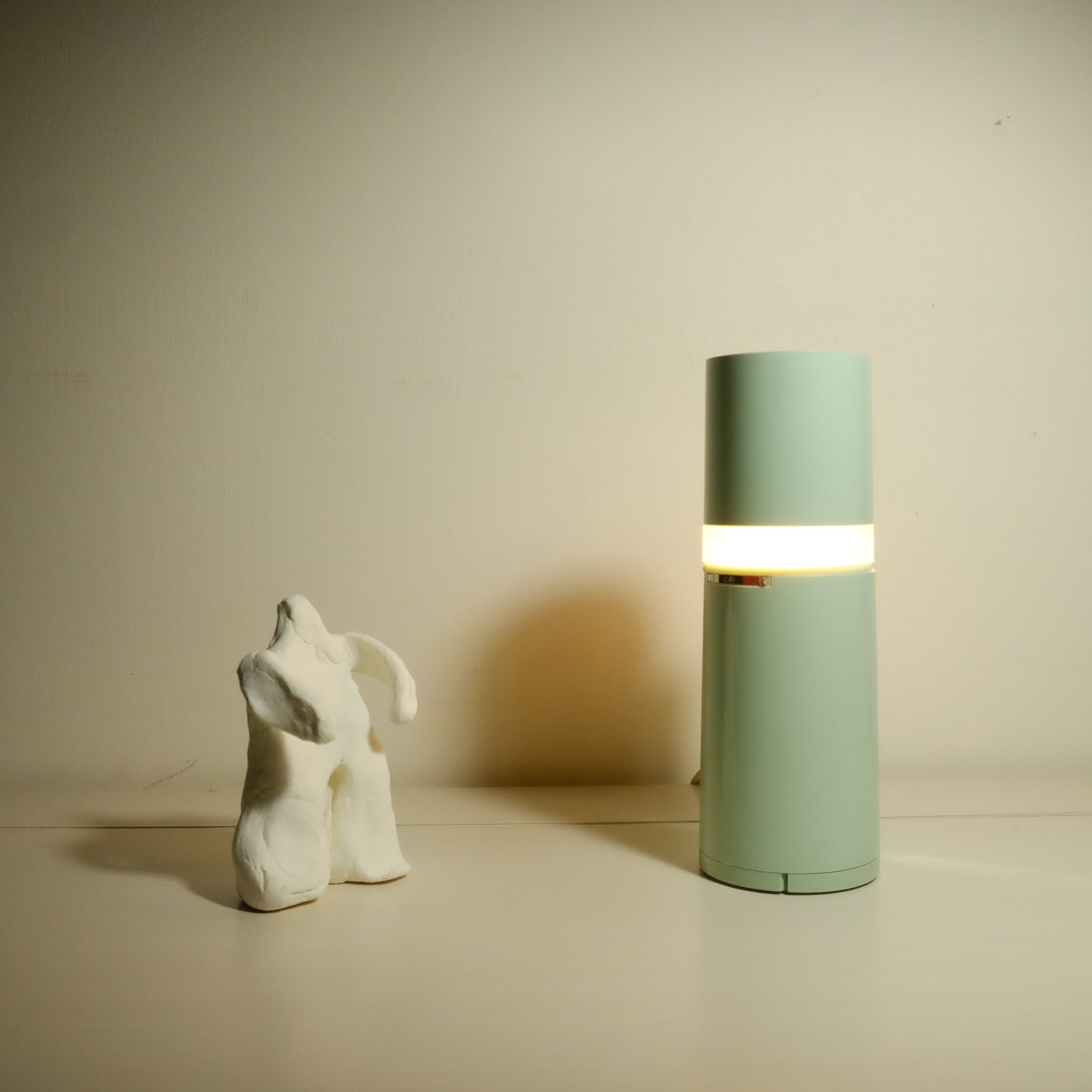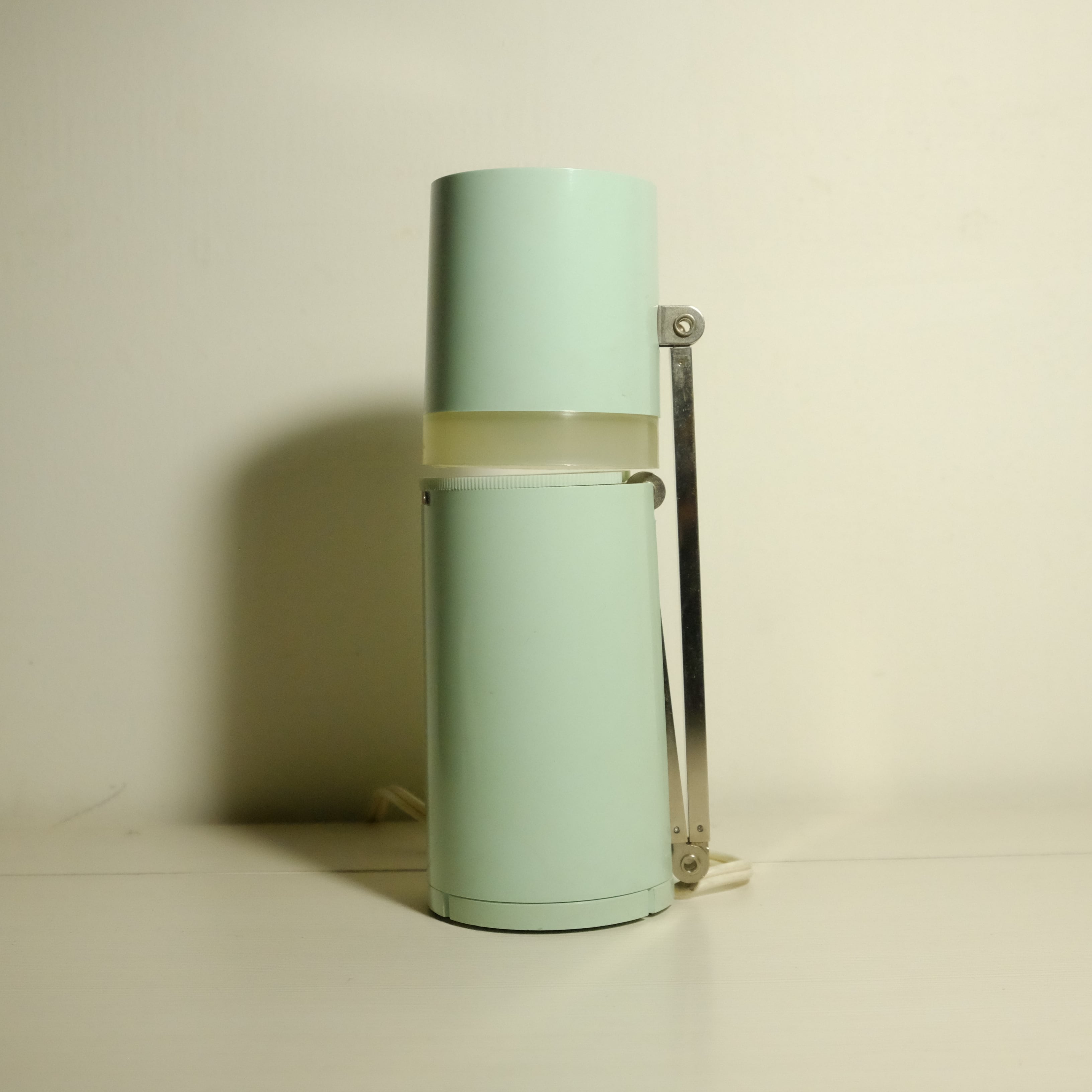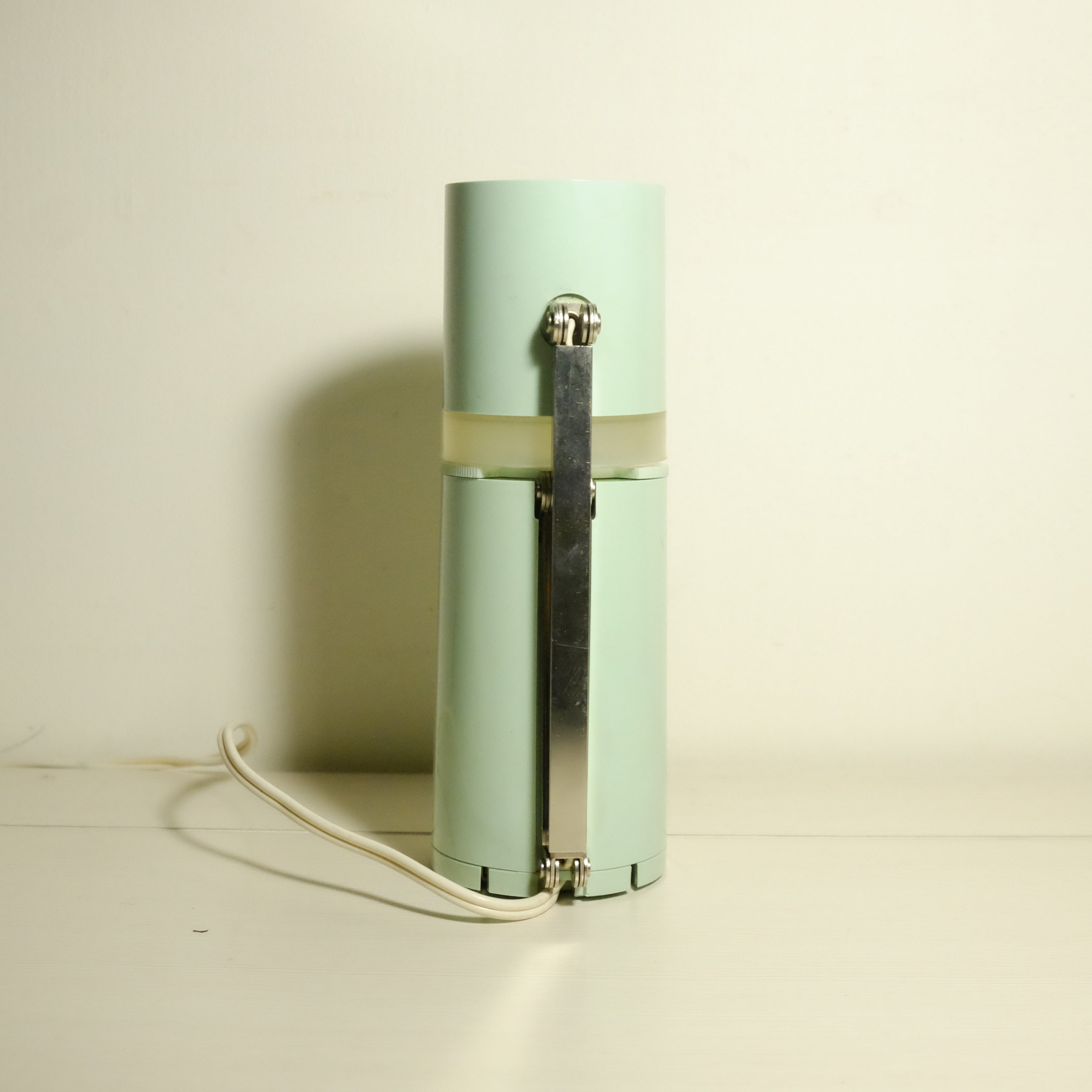 薄緑が爽やかな、円柱型のスリムなスタンドライト。