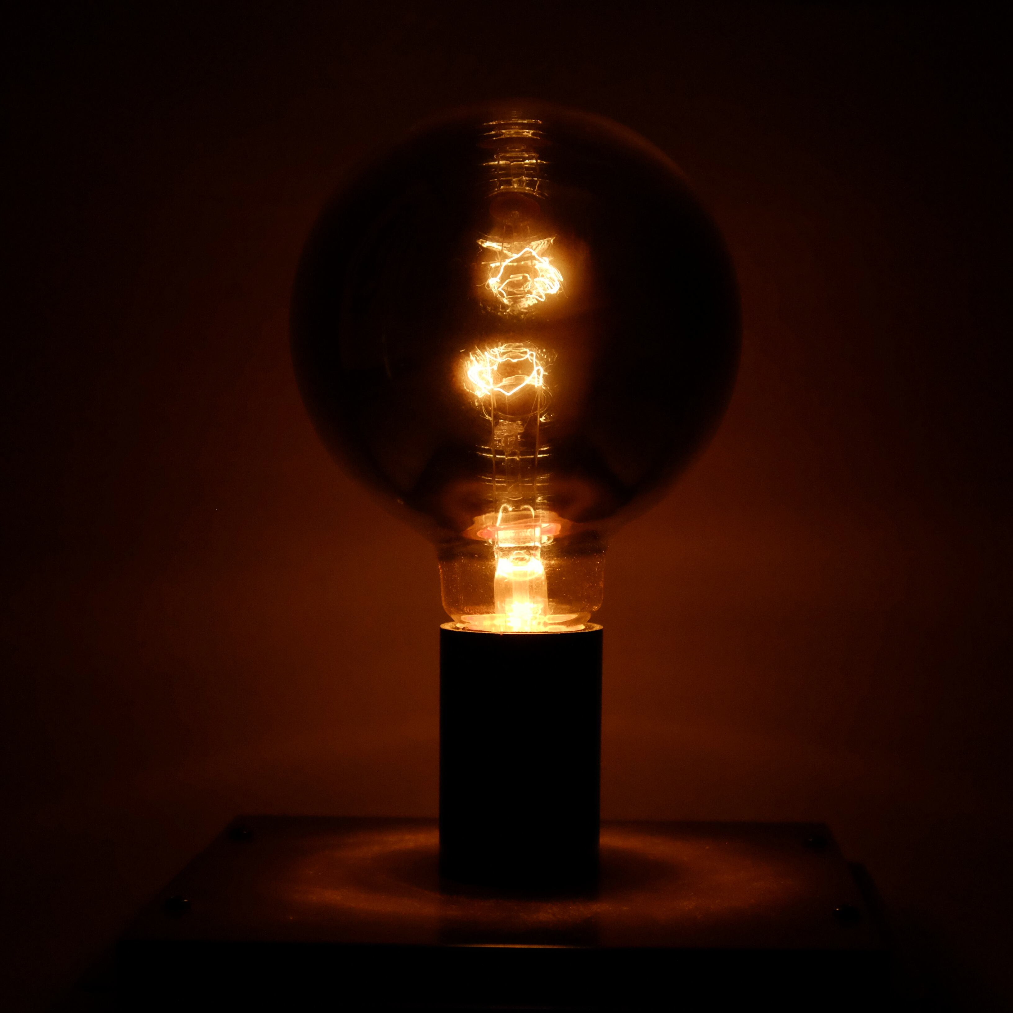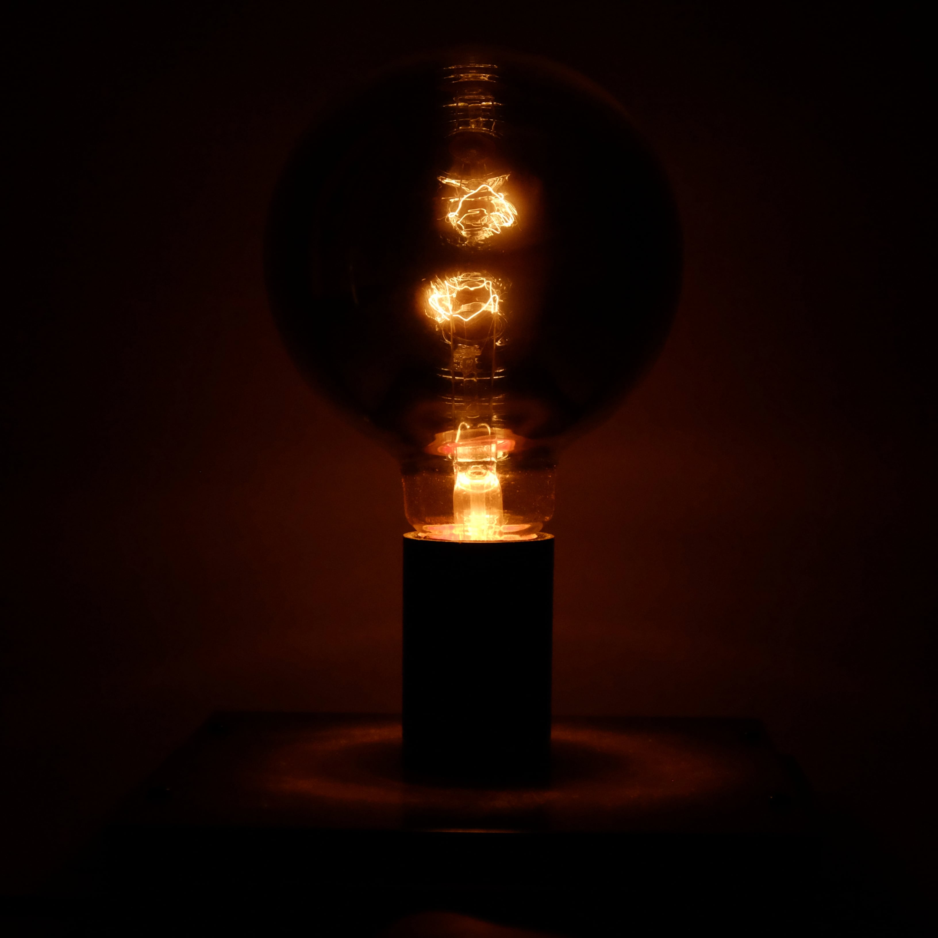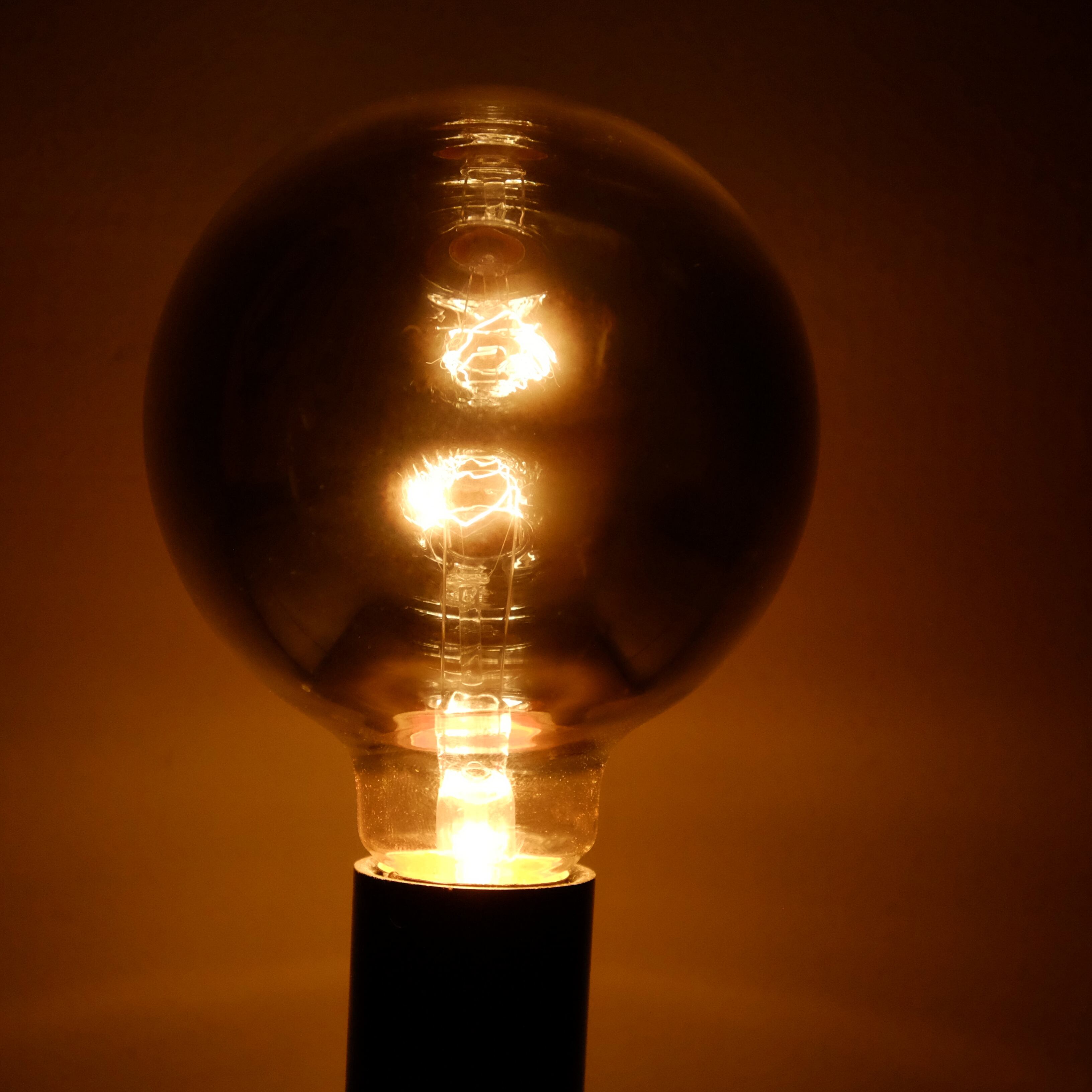 光を灯すと、フィラメントが徐々に浮き上がってきて、ガラス球の内側に反射し、フィラメントが二つ浮いているように見えるのです。